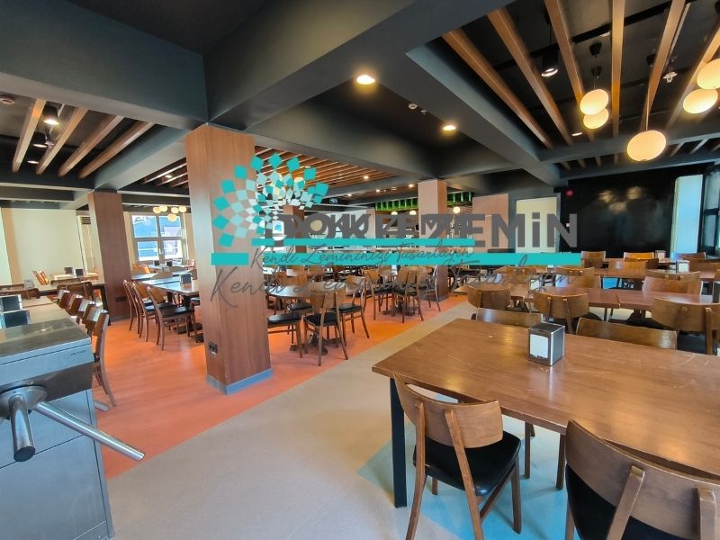 - Yemekhane - Tarkett Eclipse Homojen PVC: Kolay temizlenebilir ve hijyenik yapısıyla yoğun kullanıma uygun bir çözüm sunduk.
