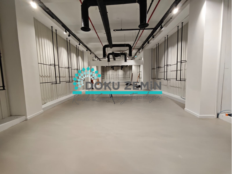 mikro beton, showroom zemin, dekoratif zemin kaplama, beton görünümlü zemin, derzsiz zemin, modern zemin, endüstriyel tasarım, zemin yenileme.
