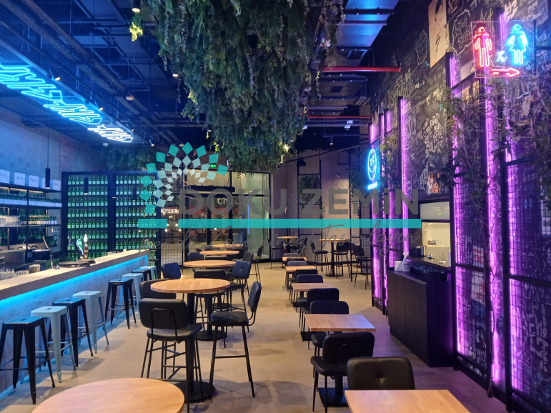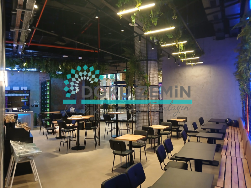 Metropol İstanbul AVM Sojubar Restoran Zemin Uygulaması | Uzin Mikro Beton & Ahşap Deck – Doku Proje ve Zemin Sistemleri