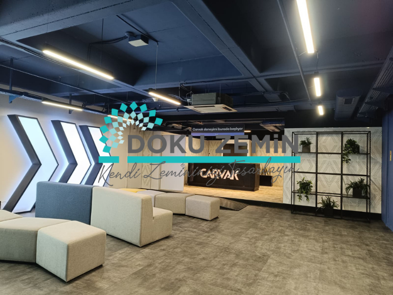 Viyaland AVM içerisinde faaliyet gösteren Carvak firmasında, yükseltilmiş döşeme sistemi üzerine Tarkett ModularT 5 mm LVT Loose Lay zemin kaplama uygulamasını başarıyla tamamladık. Projede hem estetik hem de teknik gereksinimler dikkate alınarak, ticari alanlar için uygun, dayanıklı ve sökülebilir zemin kaplama çözümleri tercih edilmiştir.
