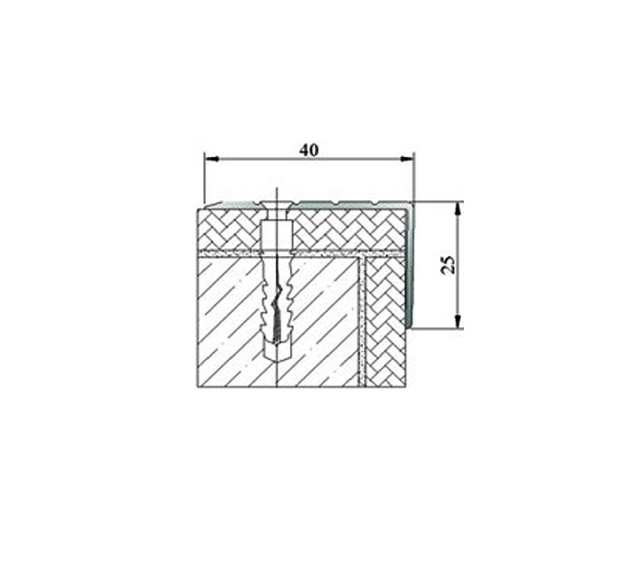 MB40-25 modeli, 40 × 25 mm ölçülerinde, alüminyum gövdesi ile güçlü ve hafif bir merdiven burun profilidir. Profil boyu 2,7 metredir. Montaj seçenekleri olarak vida delikli ya da yapışkan bantlı uygulanabilir.