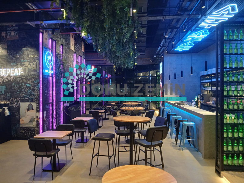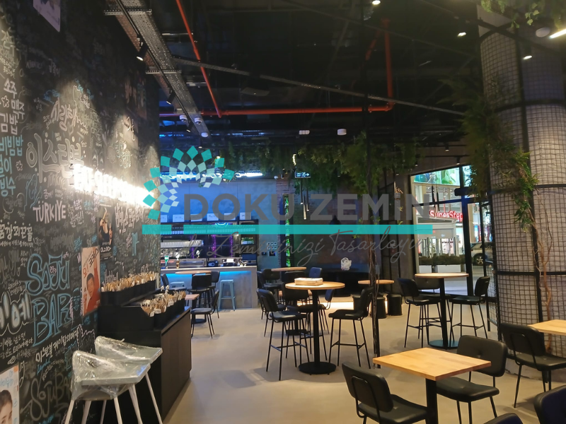 Metropol İstanbul AVM Sojubar Restoran Zemin Uygulaması | Uzin Mikro Beton & Ahşap Deck – Doku Proje ve Zemin Sistemleri