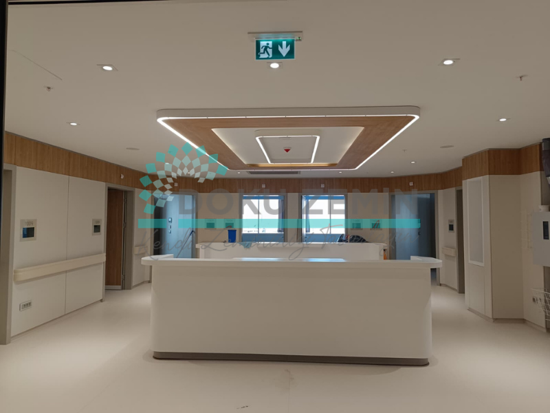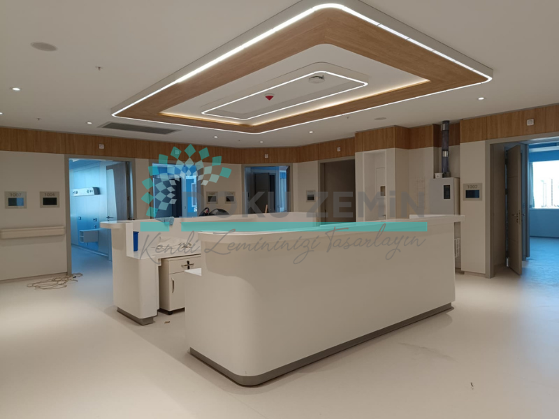 Proje kapsamında toplam 3.000 m² homojen PVC zemin kaplama uygulaması gerçekleştirilmiş olup, zeminlerde yüksek performanslı ve yoğun kullanım alanları için tercih edilen Tarkett Eclipse ürünü kullanılmıştır. Sağlık yapıları için uygun olan bu sistem; hijyenik yapısı, aşınma direnci ve kolay bakım avantajları ile uzun süreli kullanım sağlamaktadır.