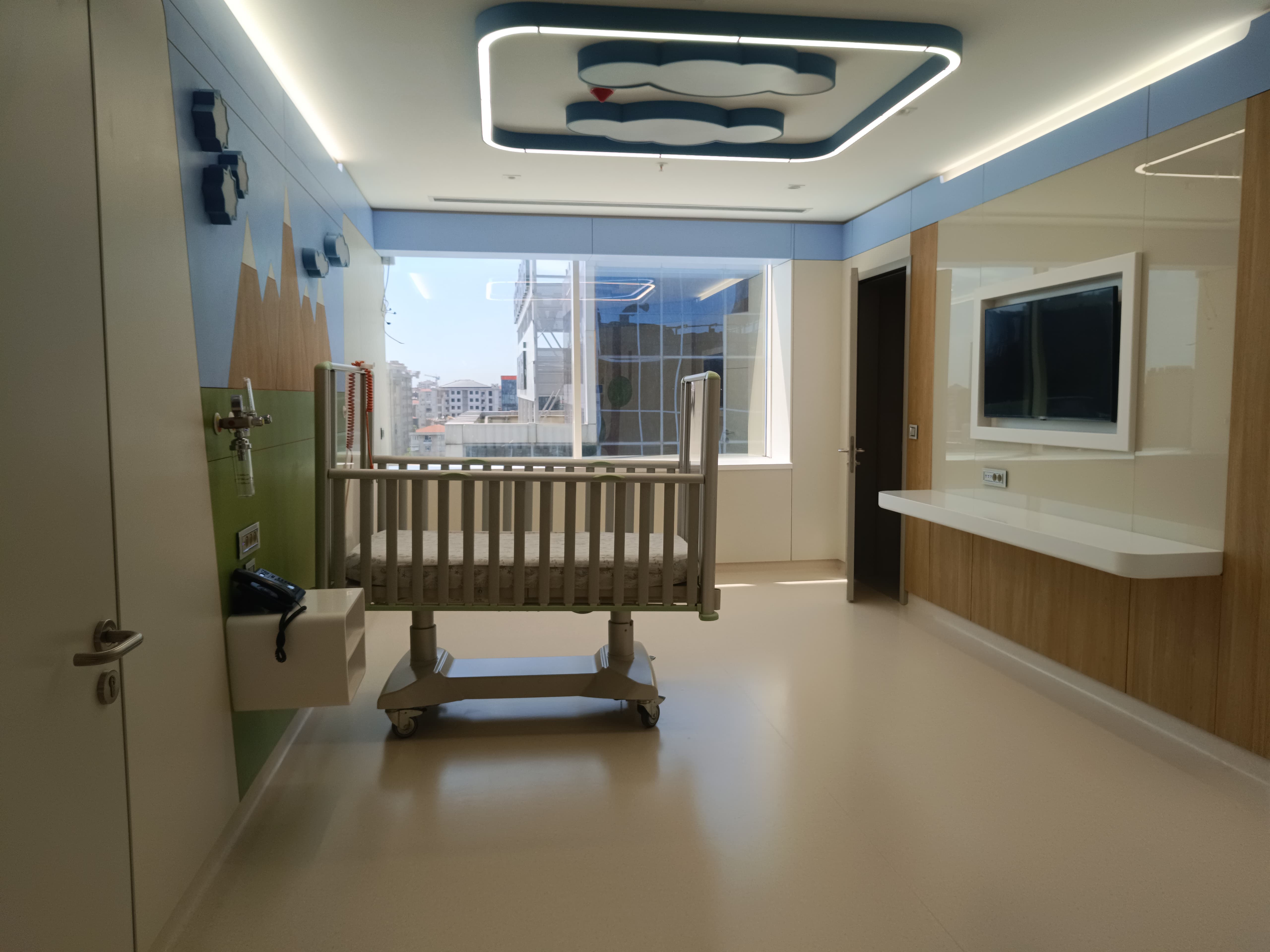 Zemin uygulamalarına ek olarak, hastane koridorları ve yoğun sirkülasyon alanlarında duvar yüzeylerini darbe ve aşınmalara karşı korumak amacıyla 1.700 metre duvar koruma bariyeri montajı gerçekleştirilmiştir.